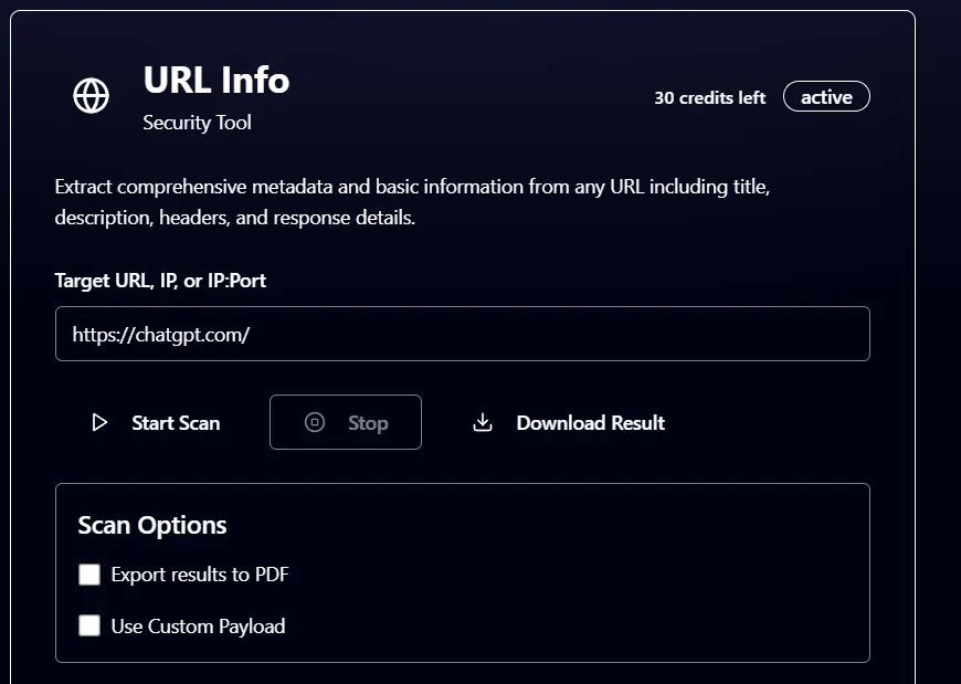 Gain instant insights into domains with ReconRay’s URL Info module. From WHOIS to DNS, headers, and tech stack - SEE EVERYTHING IN ONE PLACE.